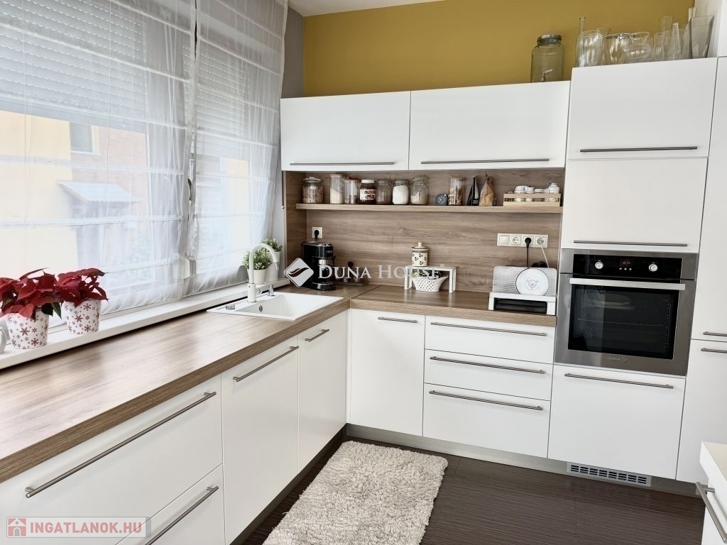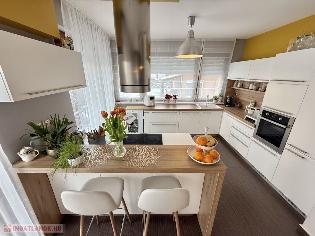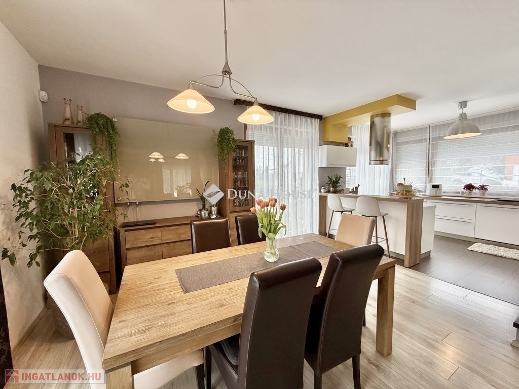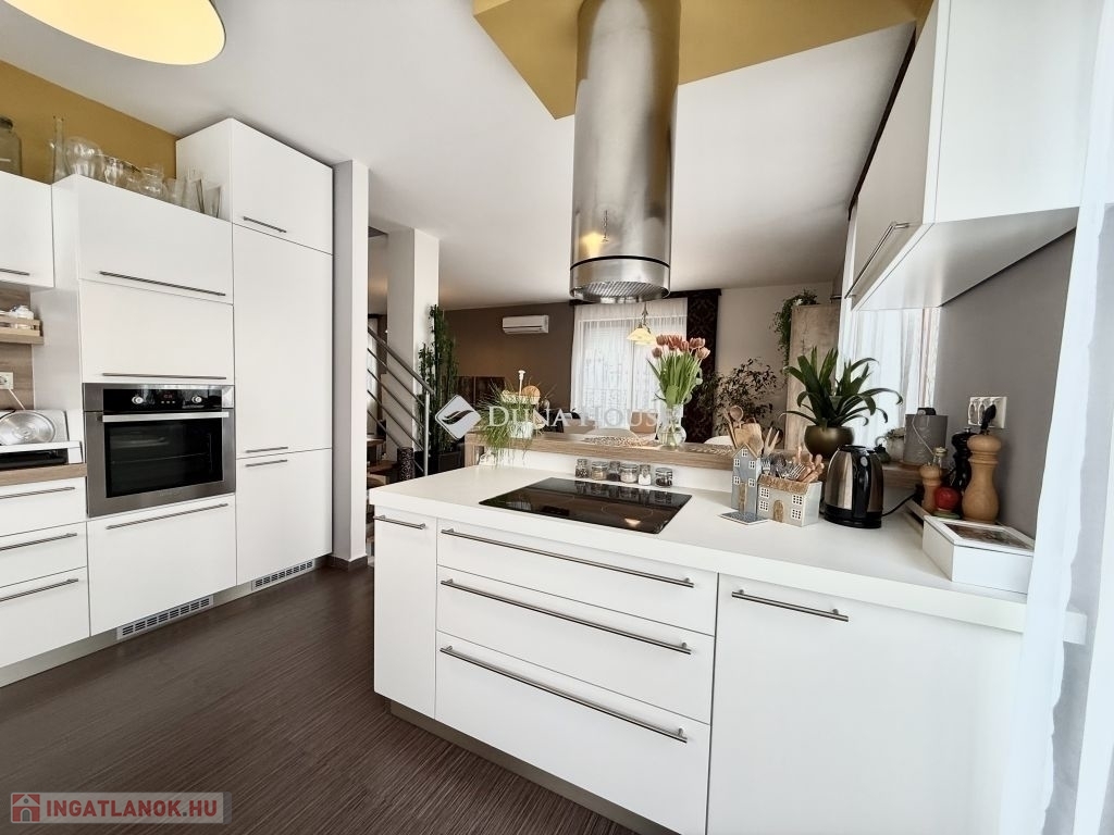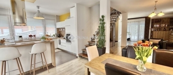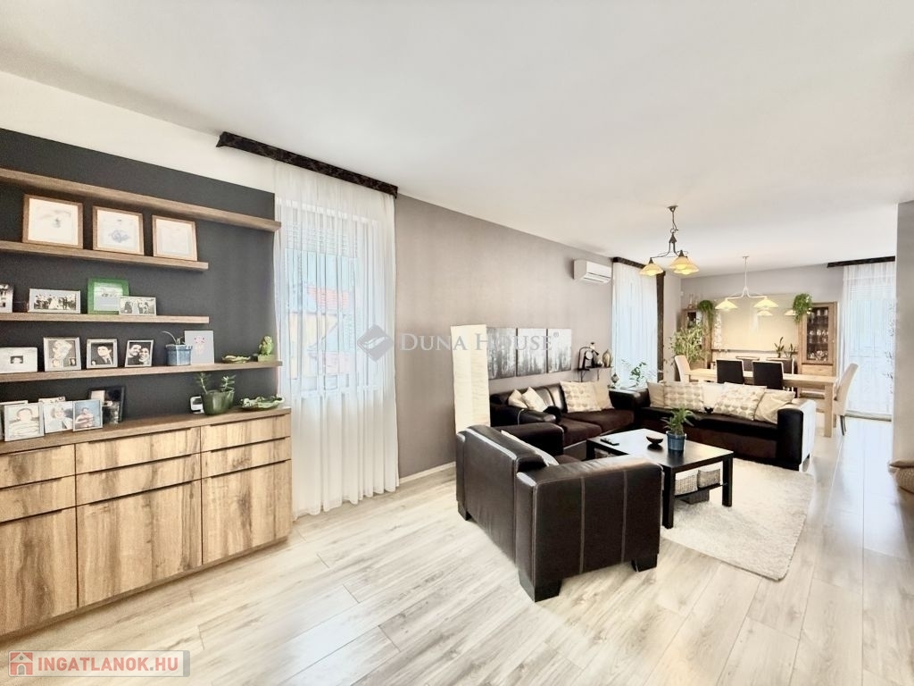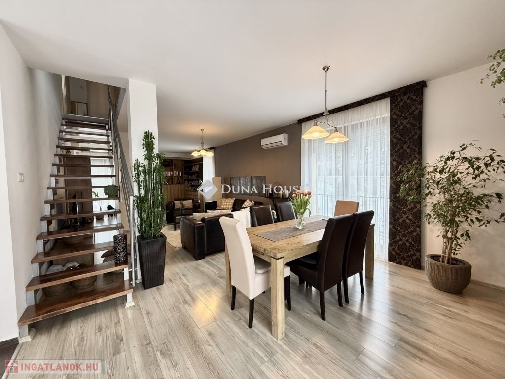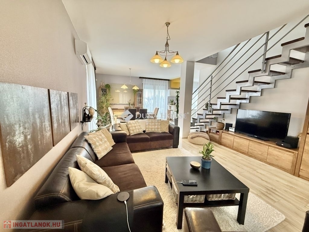 Családi ház hangulatú, tágas otthon eladó a csendes, zöldövezeti Donátusban!Pécs egyik legkedveltebb, panorámás részén, Donátusban, a Csoronika dűlőben kínálunk megvételre egy 2010-ben épült társasházi ingatlant, amely kialakításának köszönhetően teljes mértékben családi ház érzetét nyújtja ez a ritka kombináció igazán különlegessé teszi!A 124 m²-es, kétszintes, amerikai konyhás nappali + 4 SZOBÁS otthon ideális választás nagyobb családok számára is. Az ingatlan tágas, világos terekkel rendelkezik, kiváló elosztású és kertkapcsolatos.Alsó szint:-Tágas, napfényes amerikai konyhás nappali-Közvetlen kijárat a parkosított, kertre és fedett teraszra-Egy hálószoba, melyhez saját zuhanyzós fürdőszoba és WC tartozik-háztartási helyiségFelső szint:-3 külön nyíló szoba-Két szobából kijárat a 25 m²-es, panorámás teraszra-Fürdőszoba-Külön WCMűszaki jellemzők:-Kondenzációs gázkazános fűtés-Riasztórendszer-3 db klímaAz ingatlan csendes, nyugodt, kiváló donátusi környezetben található, gyönyörű panorámával tökéletes választás azok számára, akik természetközeli, mégis városhoz közeli otthont keresnek.Igény esetén megvásárolható egy önálló, 17 m²-es garázs, melynek ára: 10.000.000 Ft.Ha egy családi ház hangulatát keresi, de társasházi környezetben, ezt az ingatlant mindenképpen érdemes megtekinteni!