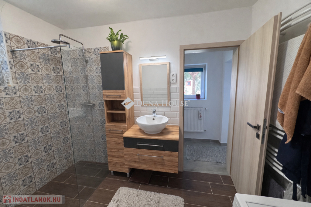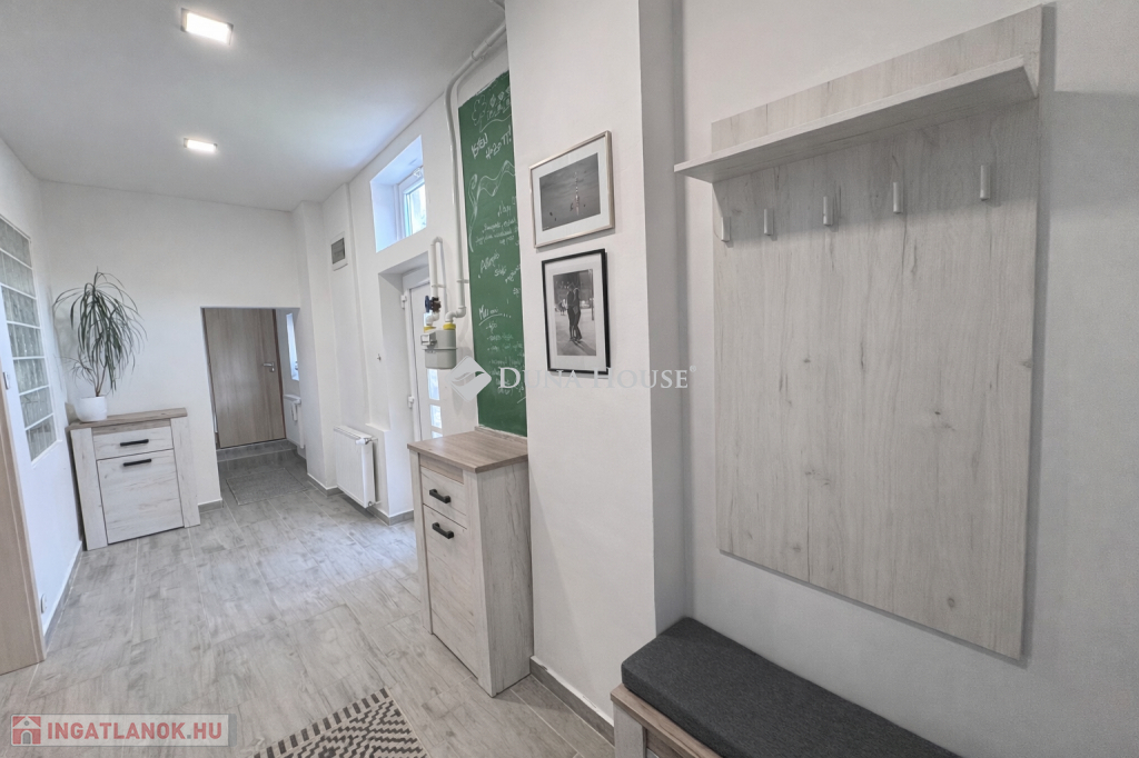 Pécs közkedvelt Patacsi városrészén eladóvá vált egy közel 100 m²-es, teljeskörűen felújított lakás amelyhez saját, kb. 350 m²-es kert tartozik.Az ingatlan praktikus elrendezésű: két külön nyíló hálószobával, valamint egy tágas, világos nappalikonyhaétkező egybenyitott élettérrel rendelkezik, amely ideális családi együttlétekhez és vendégfogadáshoz is.A lakás teljes körű felújításon esett át, mely során:a villanyvezetékek cseréje megtörtént,a mennyezet szigetelést kapott,új burkolatok kerültek beépítésre,valamint modern, műanyag nyílászárók lettek beépítve.A ház előtt egy autó számára kényelmes parkolási lehetőség biztosított.A csendes, családi házas környezet és a saját kert kiváló lehetőséget kínál pihenésre, kertészkedésre vagy akár családi programokhoz.