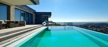 Exkluzív panorámás családi ház eladó Pécs MecsekoldalánPécs, Mecsekoldalon kínálunk megvételre kivételes adottságokkal rendelkező, újszerű állapotú családi házat. A gondosan megtervezett terek, a prémium anyaghasználat és a lenyűgöző körpanoráma tökéletes harmóniát alkotnak.Főbb jellemzők: 220 m² letisztult, elegáns lakótér 2087 m²-es, teljes intimitást biztosító telek 3 hálószoba, 2 fürdőszoba Világos, nagyvonalú belső terek, modern élettér-kialakítás 60 m²-es panorámás, részben fedett terasz 45 m²-es feszített víztükrű medence Privát szauna a teljes kikapcsolódásért Zavartalan körpanoráma Prémium műszaki tartalom: Energiahatékony hőszivattyús rendszer Wolf központi szellőztető rendszer Vízlágyító és automata öntözőrendszer Elektromos zsalúziák minden nyílászárón Riasztó- és kamerarendszer Magas szintű kivitelezés: 38-as PTH falazat, 10 cm-es hőszigeteléssel Modern alumínium nyílászárók Időtálló, elegáns mészkő homlokzat Prémium burkolatok: minőségi laminált parketta és mázas kerámia 40 m²-es garázs Hörmann kapuval Teljesen intim, zárt telek További értékek: Az ingatlan mindössze 5 éve épült, újszerű állapotban van Igény esetén teljes bútorzattal (megegyezés szerint) A vételár részét képezi egy kb. 700 m²-es, panorámás, részben közművesített telekrészEz az ingatlan ideális választás azok számára, akik kompromisszumok nélkül keresnek exkluzív otthont, páratlan környezetben.További információért kérem, keressen bizalommal!