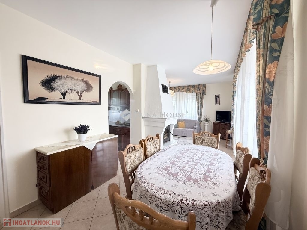 Pécs Rózsadomb városrészén, csendes és zöldövezeti környezetben kínálunk megvételre egy 2000-ben épült, kiváló állapotú, 135 m²-es családi házat 1034 m²-es gondozott telken.A felső szinten:Tágas, napfényes nappali hangulatos kandallóval, ahonnan közvetlen kijárat nyílik a teraszra, lenyűgöző panorámáva. Két külön nyíló hálószoba. Fürdőszoba káddal és zuhanyzóval, külön WC és bidé.Az alsó szinten:Egy további szoba, ami vendégszobaként vagy dolgozószobaként is funkcionálhatFürdőszoba WC-vel, tárolóhelyiség, valamint egy boltíves pince, amely ideális borospincének, zöldségek tárolására.A 16 m²-es garázs az épület része, a kertben található egy különálló, 18 m²-es kis ház villannyal, mely tökéletes lehet műhelynek, nyári konyhának.A ház fűtését gázcirkó rendszer biztosítja, de a kandallóval kiegészítve igazán otthonos légkört teremt a téli hónapokban is.Elhelyezkedése kiváló buszmegálló mindössze 5 perc sétára található, így a belváros gyorsan és kényelmesen elérhető.Ez az ingatlan ideális választás azok számára, akik természetközeli, nyugodt környezetben szeretnének élni, mégis közel a város szívéhez.Bővebb információért, megtekintésért várom hívását!