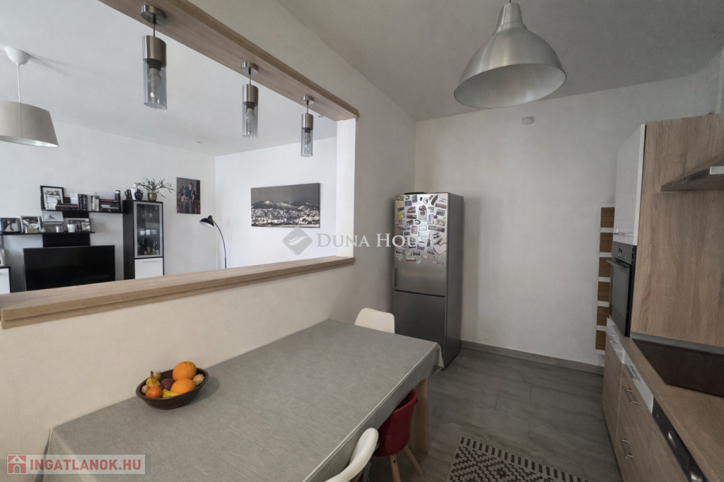 Pécs közkedvelt Patacsi városrészén eladóvá vált egy közel 100 m²-es, teljeskörűen felújított lakás amelyhez saját, kb. 350 m²-es kert tartozik.Az ingatlan praktikus elrendezésű: két külön nyíló hálószobával, valamint egy tágas, világos nappalikonyhaétkező egybenyitott élettérrel rendelkezik, amely ideális családi együttlétekhez és vendégfogadáshoz is.A lakás teljes körű felújításon esett át, mely során:a villanyvezetékek cseréje megtörtént,a mennyezet szigetelést kapott,új burkolatok kerültek beépítésre,valamint modern, műanyag nyílászárók lettek beépítve.A ház előtt egy autó számára kényelmes parkolási lehetőség biztosított.A csendes, családi házas környezet és a saját kert kiváló lehetőséget kínál pihenésre, kertészkedésre vagy akár családi programokhoz.