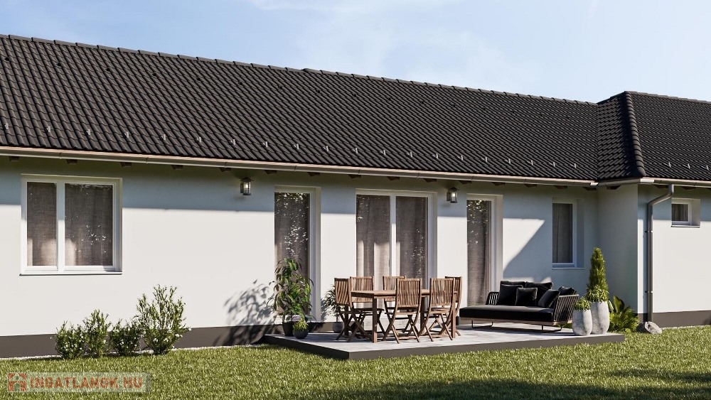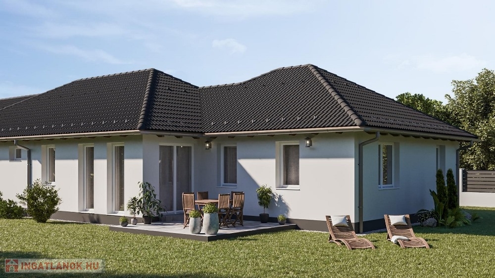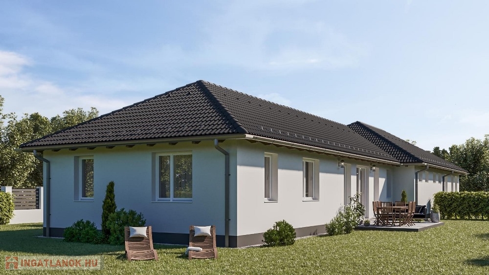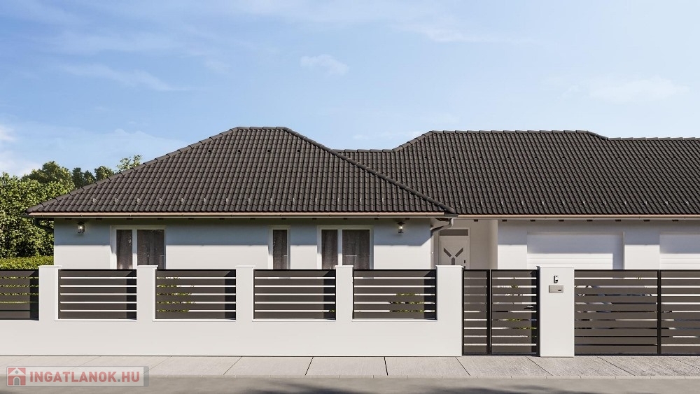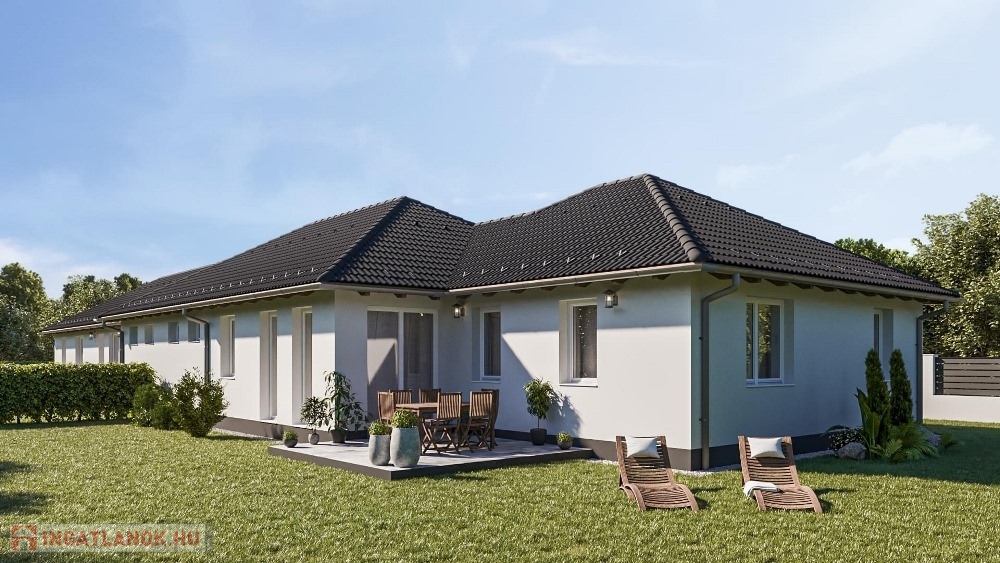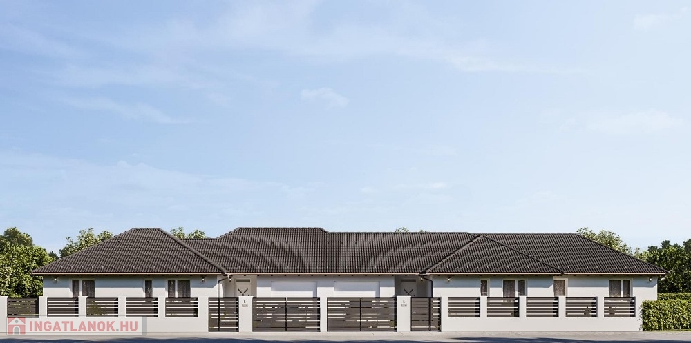 Pér csendes, átmenőforgalom mentes, kedvelt részénél, nyugodt lakókörnyezetben, 1.233 m2-es, széles UTCAFRONTÚ, 30%-os beépíthetőségű építési telken, 742 m2-es telekhányadon elhelyezkedő, modernkori építészeti elvárásoknak megfelelő, magas minőségben kivitelezett, amerikai konyha – étkező - nappali + 4 hálószobás, továbbá kazánházzal és háztartási helyiséggel is felszerelt, duplakomfortos, (2 db fürdőszoba) 110 m2 hasznos alapterületű, egyszintes, új építésű, emeltszintű fűtéskész állapotú ikerház, 16,2 m2-es TERASSZAL és 24,35 m2-es egyállásos GARÁZZSAL eladó!
