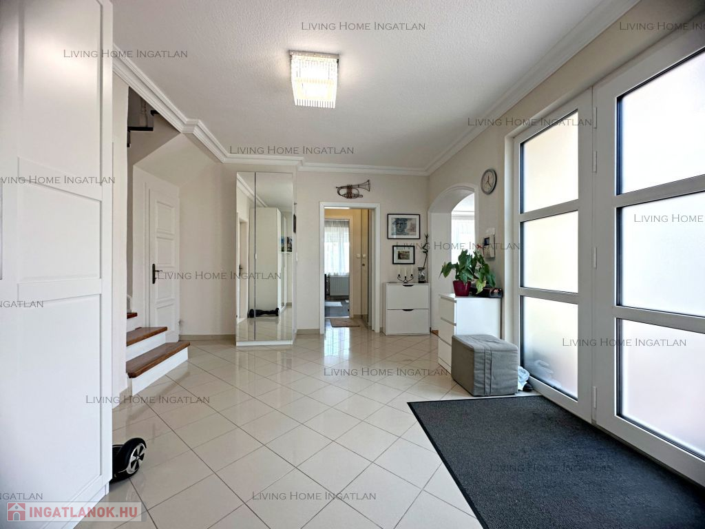 Pilisvörösvár is a dynamically developing small town in the direct agglomeration of Budapest, at the foot of the Pilis. The property is located in a quiet, family-friendly environment, with excellent infrastructure. The 600 sqm intimate garden is surrounded by ornamental trees, well designed. The courtyard can comfortably accommodate several cars, the covered carport can park one car with electric charging facilities. The total size of the house is 317 sqm, the two residential floors are 220 sqm.