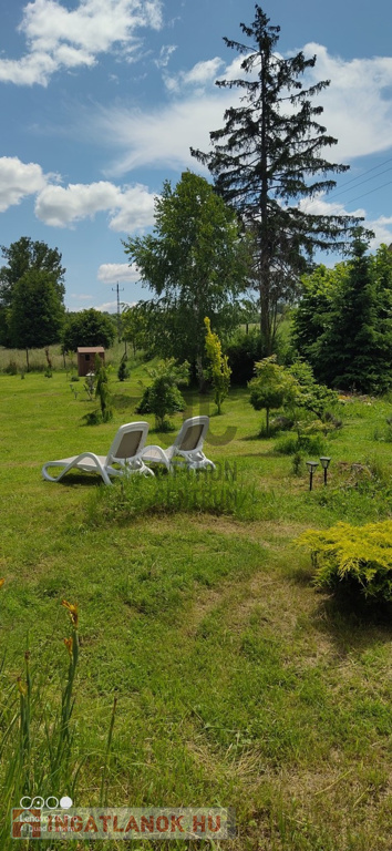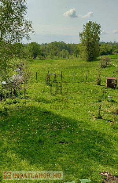 A házhoz tartozó patak parti kert gondozott, sík, jó arányú telken igényes kialakítású, japánkert stílusú. Méreténél fogva akár lótartásra is alkalmas.