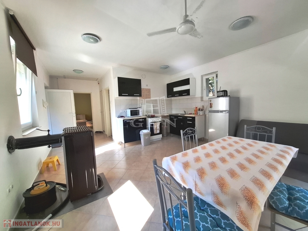 A vízellátást fúrt kút biztosítja, a fűtés elektromos fűtőpanelekkel és kandallóval megoldott, így a ház egész évben lakható.