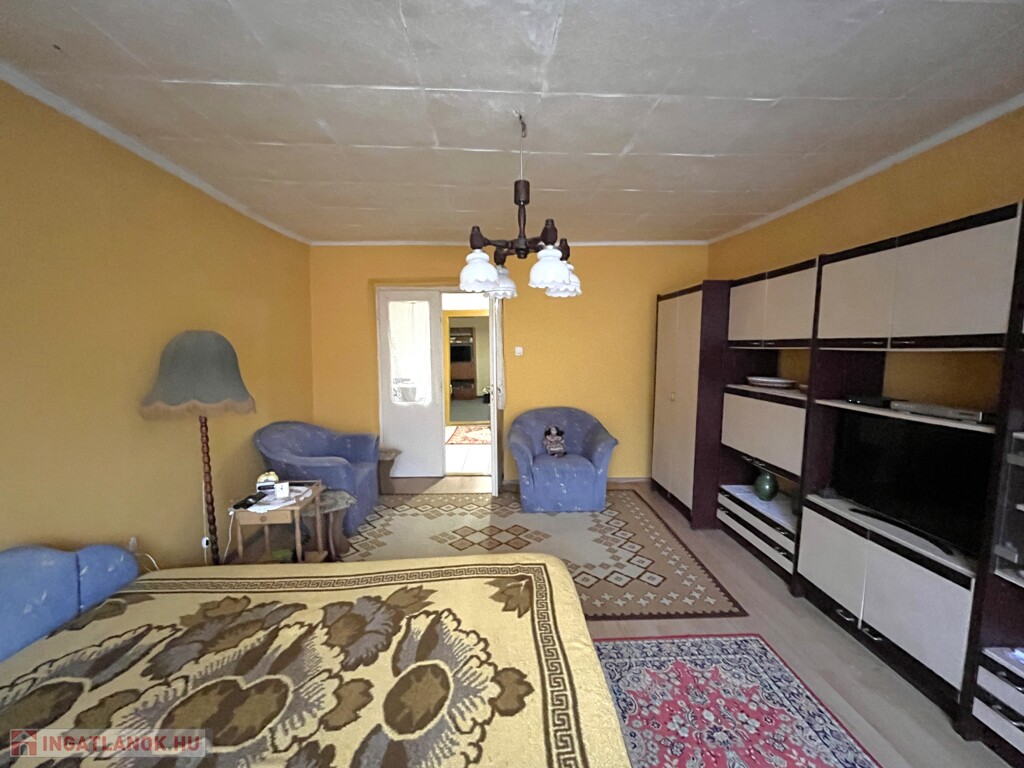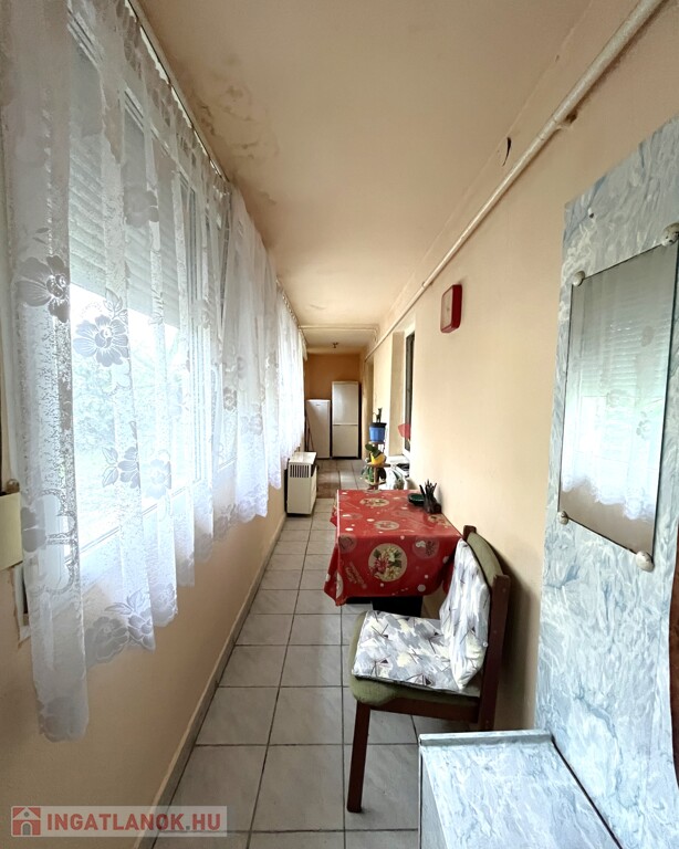 A hosszú parasztház jellegű ingatlan 80 m2, nyitott verandáját beépítették, így remek tárolásra alkalmas helyet kaptunk. A folyosó végén találjuk a konyhát és a tusolós fürdőt. A két tágas szoba egy nagyobb előtérből nyílik, amit akár kisebb nappalinak is használhatunk. A családi ház konvektor fűtésű, vezérelt árammal működő villanybojler adja a meleg vizet. Nyílászárói redőnyös műanyag ablakok és biztonsági bejárati ajtó került a régi helyére néhány éve. Gondozott, karbantartott ingatlan, de a tető javítása szükségszerű lesz.