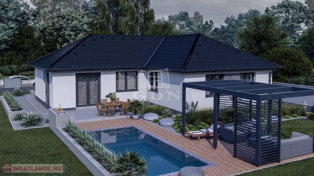 Vh-004345 Sukorón, a Velencei-tó északi partján, átmenő forgalomtól mentes, csendes utcában ÚJÉPÍTÉSŰ „közel nulla energiaigényű épületek követelményszintjének megfelelő” energiaosztályú, 115,41 m2 hasznos alapterületű, nappali+5 szobás, ÖNÁLLÓ családiház 873 m2-es telekterülettel eladó.