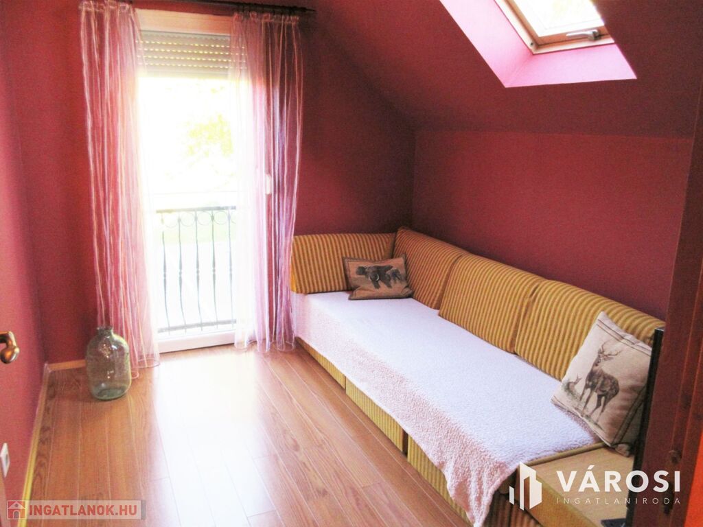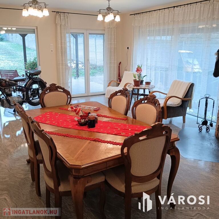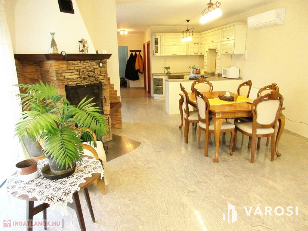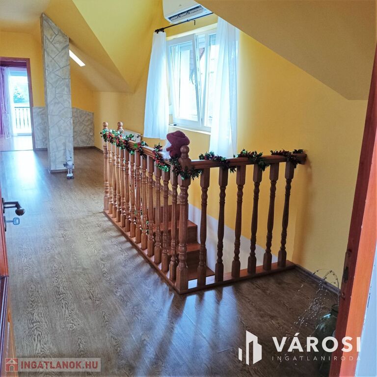 Hatalmas alapterülete van, mely akár nagycsaládosok számára is kiváló választás. A hőszigetelése erősen leredukálja a rezsiköltségeket. Fűtési módként a vízteres kandalló szolgál, radiátor hőleadókkal. A kandalló gáz cirkó kazánnal kiváltható, mely felszerelése a dupla méretű garázsban könnyedén kialakítható. A két 5 kW-os hűtő-fűtő klíma pedig a nyári forró napokat enyhíti. A ház kiváló helyen található: zöld övezetben, ahol a panoráma is ámulatba ejtő. A hatalmas erkélyen nagyon hangulatos egy kávézás vagy egy családi-baráti összejövetel, ahol még a hegyek mögött eltűnő naplementében is lehet gyönyörködni. Az amerikai konyhás nappaliban pedig még egy ebéd elkészítése is élmény. A csendes, nyugodt utcában kiváló a közbiztonság, rendes szomszédsággal.