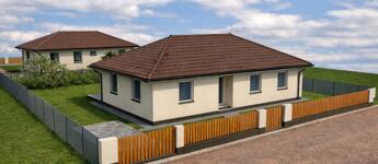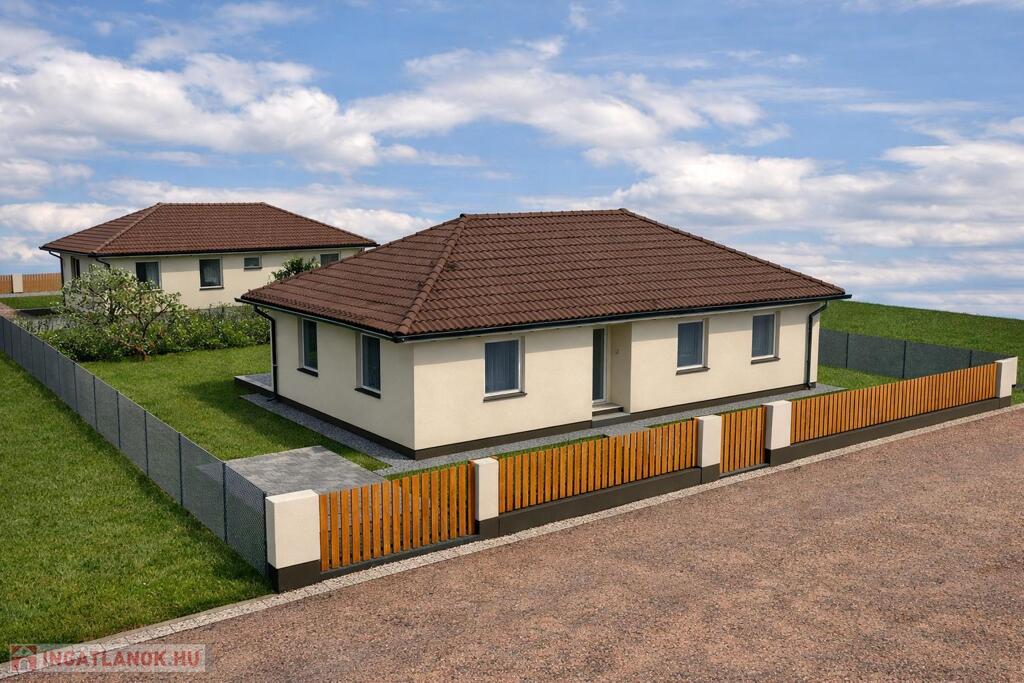 A 1250 nm-es közművesített (víz, villany, csatorna, gáz) telken 2 darab nettó 102 nm-es, egyszintes, NÉGY HÁLÓSZOBÁS + amerikai konyhás nappalival rendelkező családi ház épül, 625 NM SAJÁT TELEKHÁNYADDAL. A tágas lakótérben 4 hálószoba, nappali, konyha, fürdőszoba és vendég toalett kerül kialakításra, és egy 15 nm-es TERASZ is tartozik hozzá.