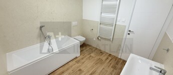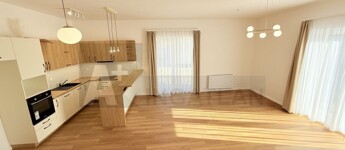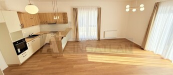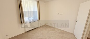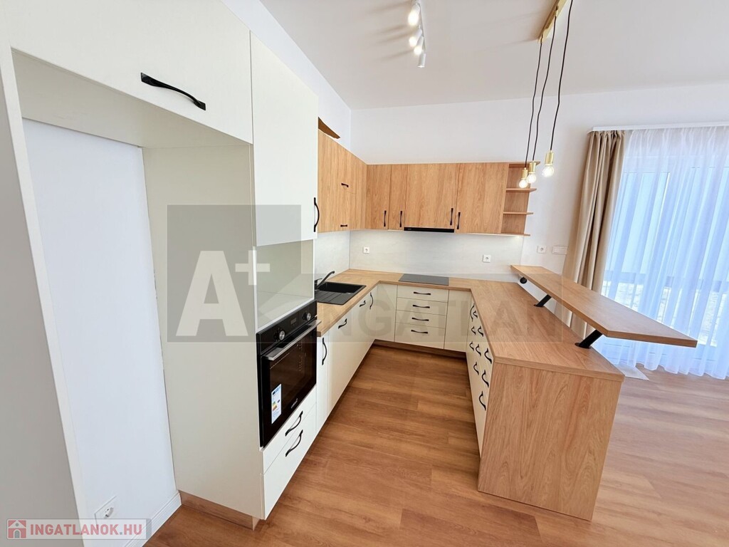 Kulcsra kész előtti állapot : új konyhabútor , háztartási gépekkel , a szobákban padlószőnyeg