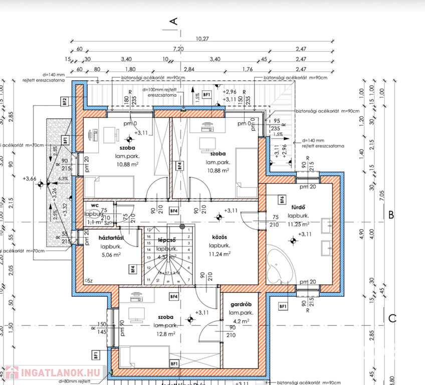 - Emeleten tágas közös rész, 3 hálószoba, mosókonyha és egy nagy méretű fürdőszoba