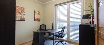 - Földszinten zsaluzia, emeleten alumínium redőny árnyékolás, telefonról vezérelhető, motoros mozgatással