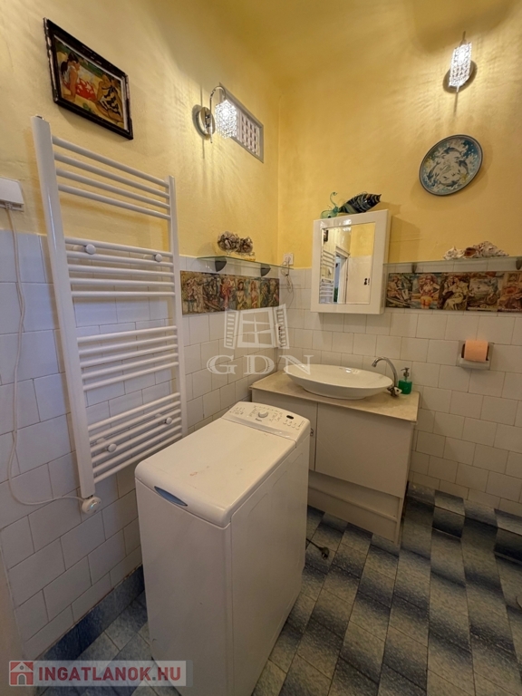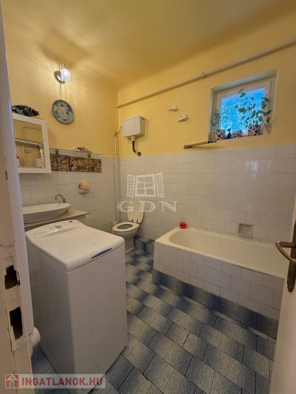 Az ingatlan 2 különálló épületből áll, az első, utcafronti épület 80m2-es, egy tágas hallba érkezünk, ahonnan nyílik a főzőfülke, majd egy közlekedőn keresztül jutunk a fürdőbe és a 3 szobába.