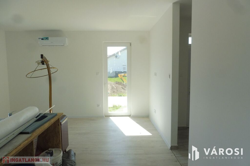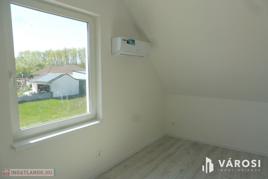 Az ingatlan fantasztikus helyen a Tisza-Maros torkolatától pár perc sétára a Töltés közvetlen közelében az Újszegedi Maros-liget lakóparkban található.A nappali plusz három szobás kétszintes ikerház rendkívül jó kialakítású hiszen ami ritkaság,hogy a földszinten is található hálószoba ami saját tusolós fürdőszobával és gardróbbal rendelkezik.Az emeleti két szoba,tágas és szép benapozású,természetesen emeleti fürdőszobával és külön WC-vel.Az ikerház saját 153 négyzetméteres kertel,illetve 22,23 négyzetméteres garázzsal rendelkezik.A teraszok méretét tekintve az utcafronti nappalival összekapcsolt terasz 15 négyzetméter az oldal fronti főbejárati fedett terasz pedig 3,01 négyzetméter.Gépészetét tekintve,vizes-rendszerű padlófűtés szolgáltatja a fűtést,elektromos Bosch kazánnal a hűtést pedig mind két szinten klíma biztosítja.Jelen pillanatban még folynak a munkálatok a kerítés kialakítását végezve.Fontos megjegyeznem,hogy a kulcsrakész árban a konyhabútor nincs benne.