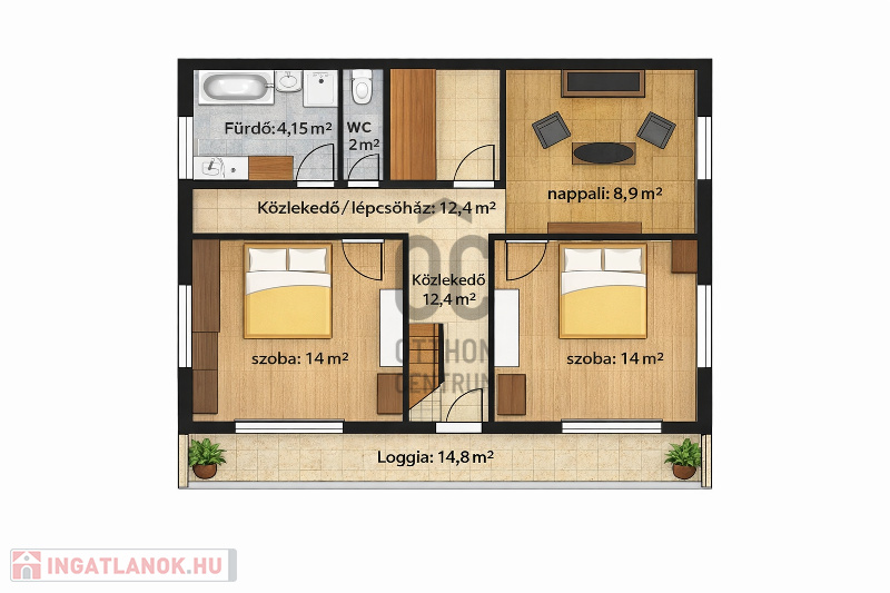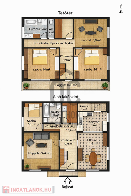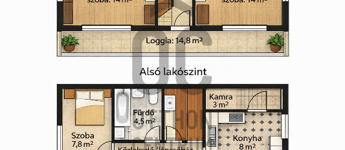 -dupla komfort (mindkét szinten fürdő és WC)