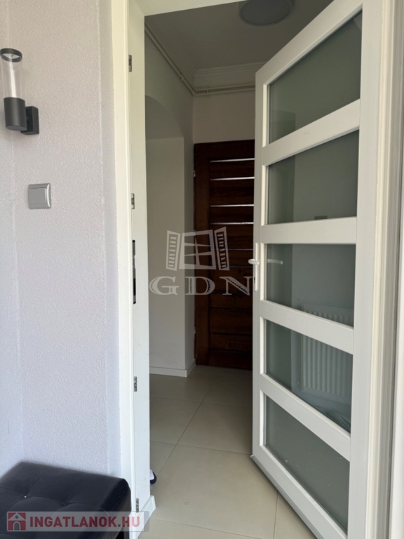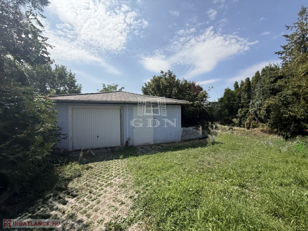 Az ingatlanhoz egy 60 m2-es részben fedett terasz csatlakozik. A kert részben parkosított, dísznövényekkel telepített.. A telken található egy állásos garázs/ műhely/ nyárikonyha.