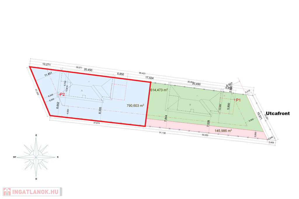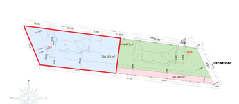 Székesfehérvár egyik legnépszerűbb kertvárosrészében, a Fekete hegy, város közeli szélén, csendes utcában készült ez a családi ház, 1600 négyzetméteres telken, közösen egy másik házzal. Ehhez a házhoz a telekből 790 négyzetméteres rész tartozik ( a megosztási vázrajzon pirossal bekerített telekrész). A házakhoz tartozó telekrészek teljesen elszeparálhatók.