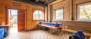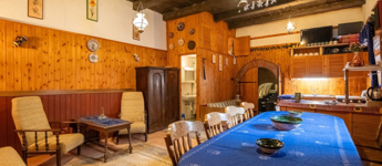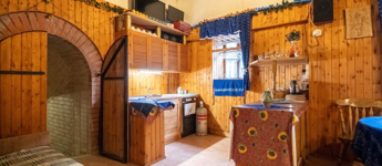 Az belső helyiség vegyes falazatú,a hátsó részen beton megerősítéssel, szigeteléssel, amelyben konyha- étkező- nappali került kialakításra.
