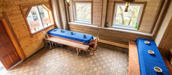 Az épület első része tégla falazatú ( három oldalon Ytong, egy oldalon hagyományos tégla) fa burkolattal kívül-belül, fa bejárati ajtóval, műanyag ablakokkal.