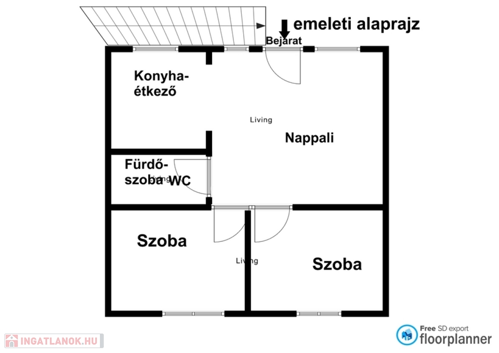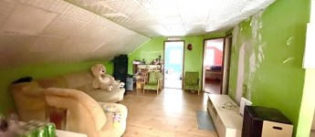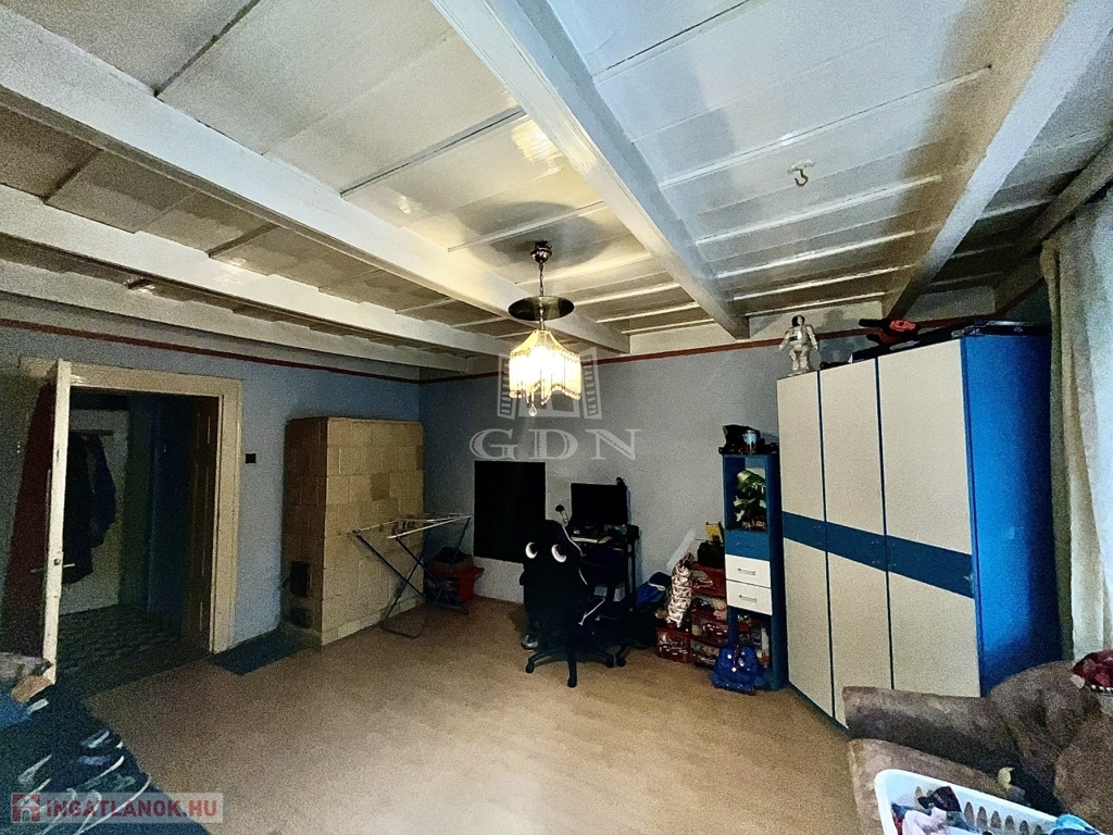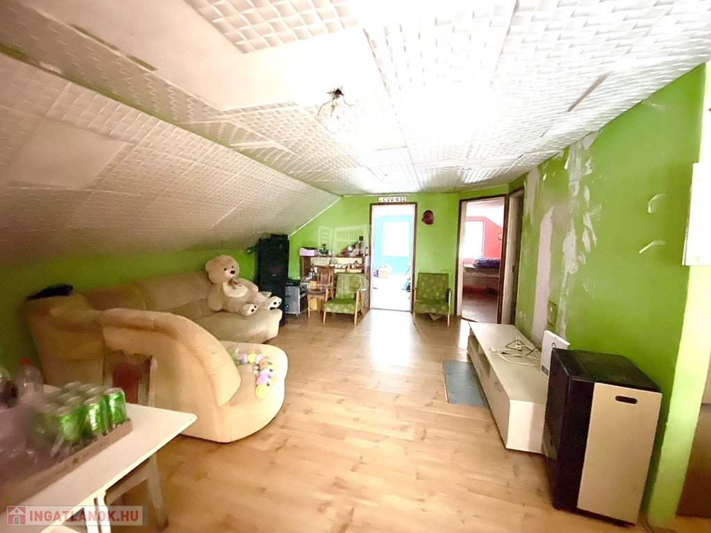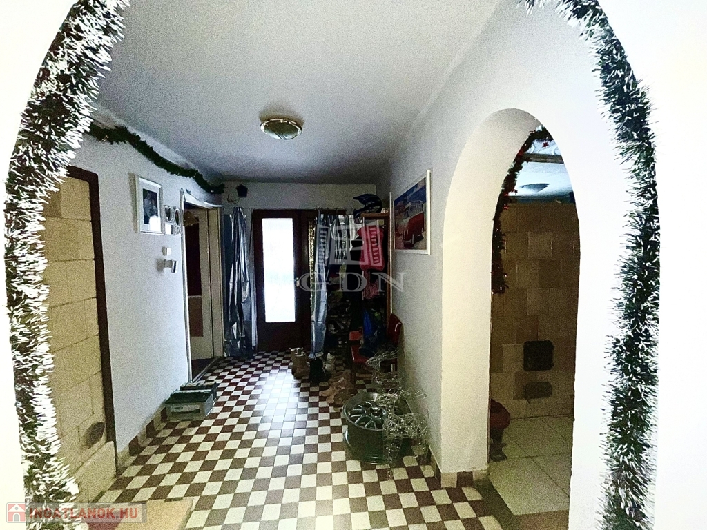 Az ingatlan külön bejárattal rendelkező emeleti lakrésszel rendelkezik, így a két szint teljes mértékben önállóan használható. A földszint alapterülete 110 m², míg az emelet 94 m², mindkét lakrészben konyha-étkező, kamra, nappali és két hálószoba került kialakításra.