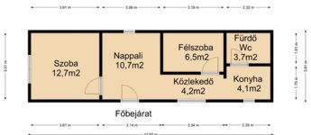 A belső lakrész belmagassága: 2,1m és 2,05 m között mérhető.