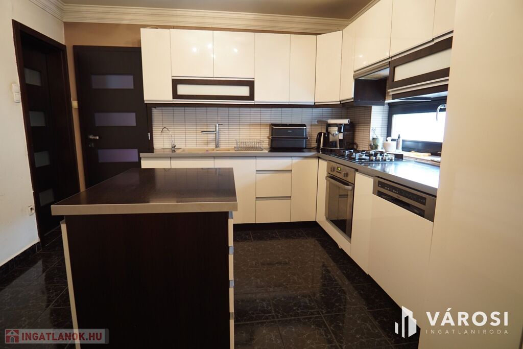 - új konyhabútor beépítése, teljes gépesítéssel, (mosogatógép, főzőlap, elszívó, sütő)
