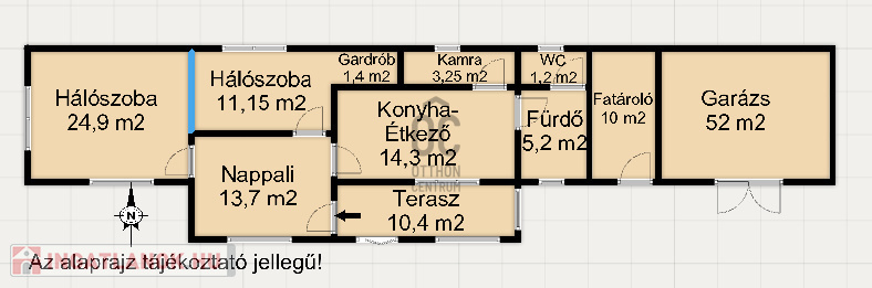 - garázs dupla méretű: 52 m2 nagyságú, melyben a víz és a villany is rendelkezésre áll