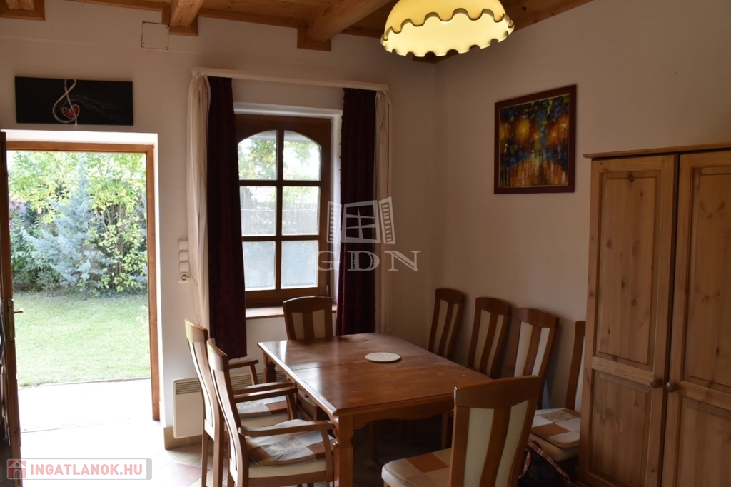 A lakrész egy hangulatos teraszból, utcafronti nagy nappaliból, étkezőből, konyhából, tágas hálószobából és fürdőszobából áll. Az eredeti, százéves gerendák gondos felújításon estek át, megőrizve a ház autentikus báját.