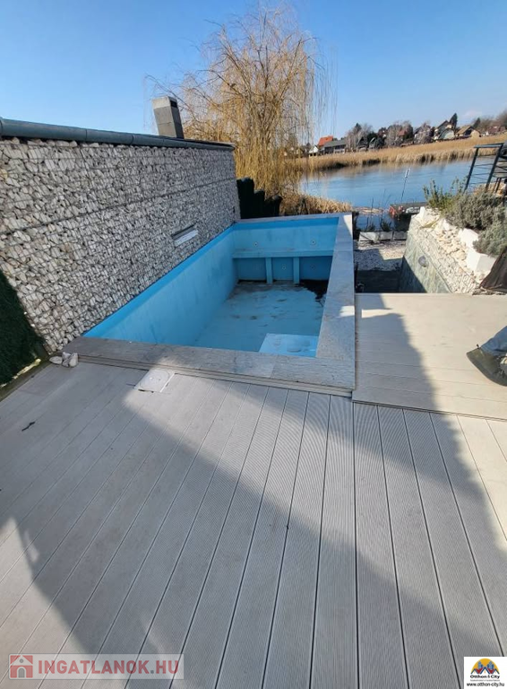 Falazata ytong, 15 cm-es szigeteléssel, monolit vasbeton födémmel. Stéggel, amely 80 m², a kellemes, csendes horgászás élményért.