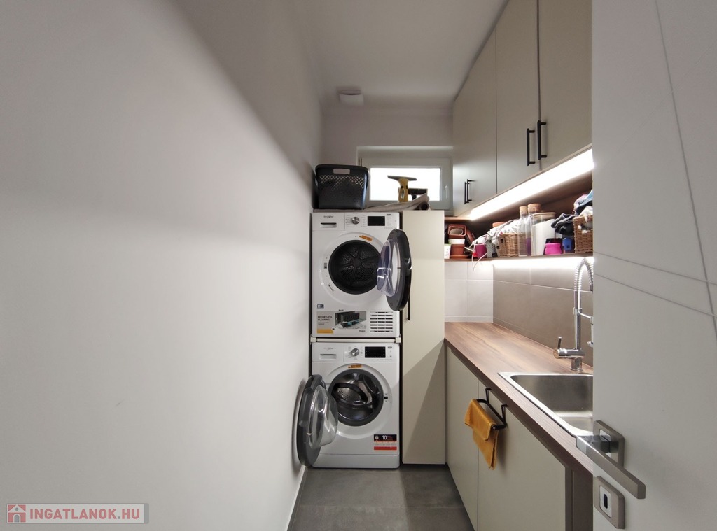 a házban a nyílászárók 3 szinten 2 rétegű méretre gyártott színezett fa ablakok. Az ARISTON Clas One típusú, korszerű, wifi-s kondenzációs kazán gondoskodik a kellő hőérzetről és a melegvízről a lapradiátorokon keresztül. A fűtés átalánydíja 25.000 Ft/hó átlagosan. A többi fogyasztás a mérőórákkal mérés alapján történik, nagyon gazdaságos rezsiköltséggel.