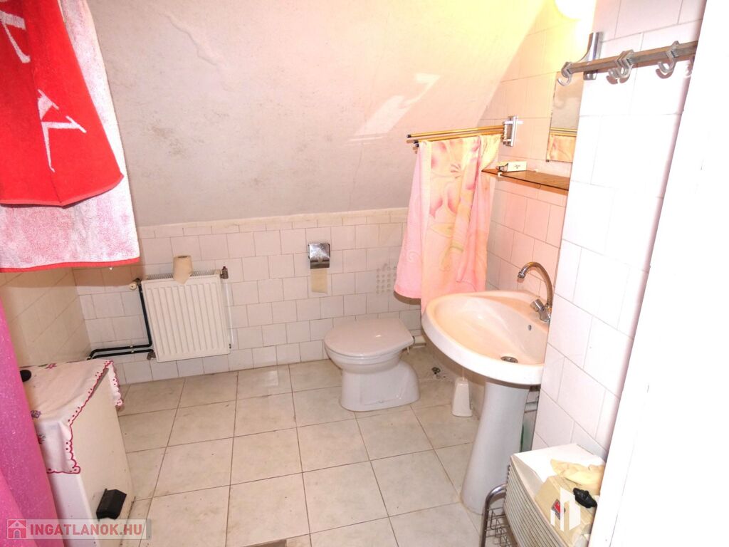 A szobákban parketta, az előszobában, a konyhában és a fürdőszobákban járólap van. A melegvizet két külön villanybojler biztosítja.
