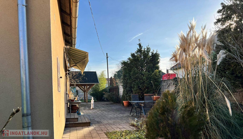 A házat körülölelő kert kialakítása az új tulajdonos fantáziájára van bízva. A frontkerítést gyönyörű borostyán fedi, amely biztosítja a privát szférát. A ház előkertje gondozott, az oldalkertben díszbokrok teszik hangulatossá a környezetet, míg a hátsó kert tökéletesen alkalmas akár egy épített medencének, vagy játszótérnek.