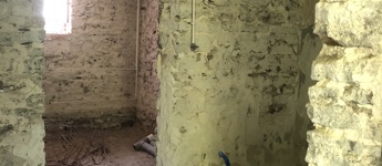- Az alsó szinten – amely az utcafront felől szuterén, a kert felől viszont földszinti – már megkezdődtek az átalakítások, az alapokig visszabontva, így itt teljesen új funkciókat, elrendezést alakíthat ki a leendő tulajdonos.