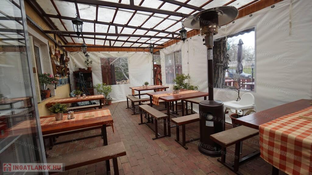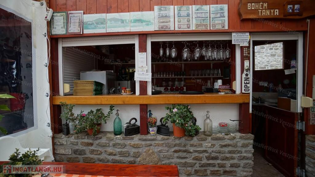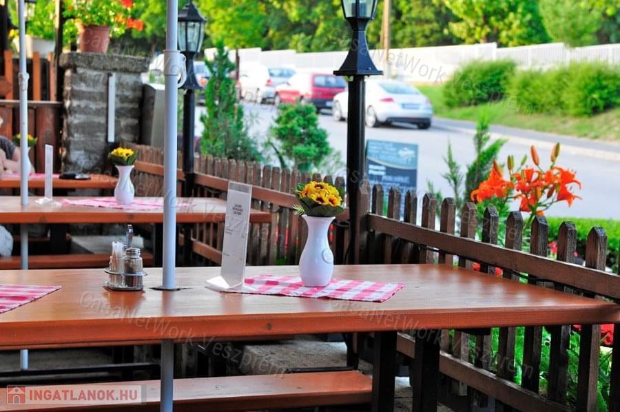-A vendéglőhöz tartozik: Konyha előkészítőkkel, belső terem, mosdók, kint a nagy terasz mely télen zárható, a pult és egy látványgrill