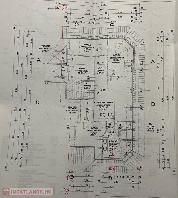 -Az emeleten található 4 szoba, egy fürdő Wc-vel, vendég Wc, nagy amerikai konyhás nappali