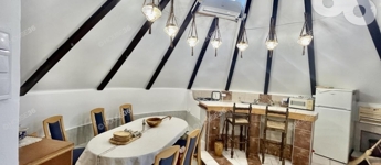 - lakóépület egyedi megjelenését adja a különleges formája, nádtető fedése és terméskő burkolata. Nádtető 4 éve lett teljes körűen felújítva.