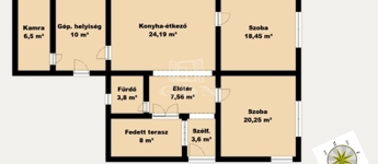 Belső elrendezés: három szoba, melyek közül kettő egymásból és külön-külön is nyílik. Kialakításra került egy AMERIKAI KONYHÁS nappali élettér. A fürdőszoba ABLAKOS, a toalettel egy légtérben. Az ingatlan BEFEJEZÉSRE VÁR, így TESTRE SZABHATÓ befejezést és belső kialakítást tesz lehetővé.