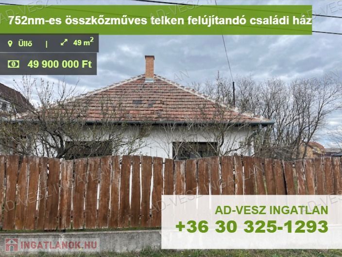 Eladó Pest Vármegyében, Üllőn egy 49m2-es felújítandó családi ház, 752m2-es összközműves telken, amely kiváló alap lehet álmaid otthonához vagy akár egy teljesen új építéshez!