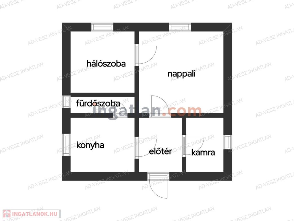 -2 szoba + konyha + kamra +előszoba+ fürdő WC-vel
