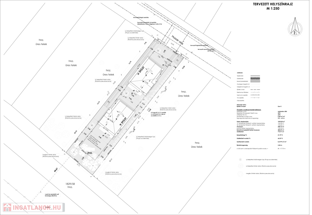 Vácon, a csendes és jól megközelíthető Huszár utcában kínálunk eladásra egy 1094 m²-es telken épülő két darab új, kulcsrakész családi házat, egyenként 94,02 m² nettó hasznos lakótérrel és 14,3 m²-es terasszal.
