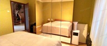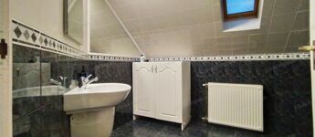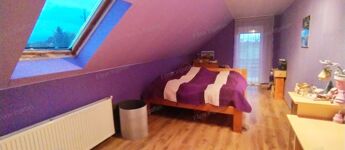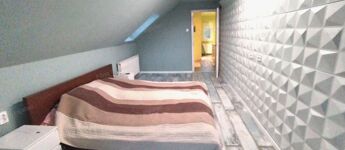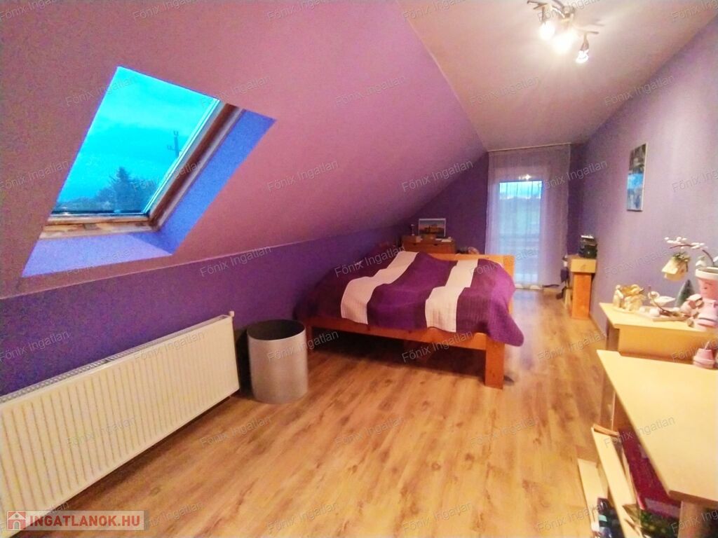 Az emeleti szint 60 m² beépített területet kínál egy 5 m²-es erkéllyel, 2 szobás, egy fürdőszobával, ahonnan szép kilátás nyílik a rendezett kertre. Az ingatlanhoz tartozik továbbá egy 40 m²-es garázs és melléképület is, ami bőséges tárolási lehetőséget biztosít.