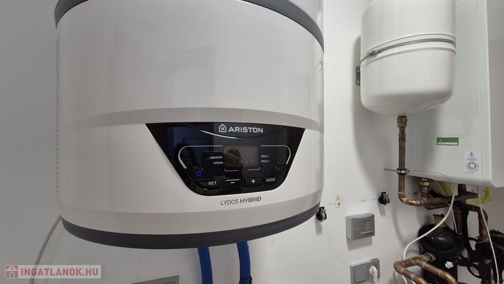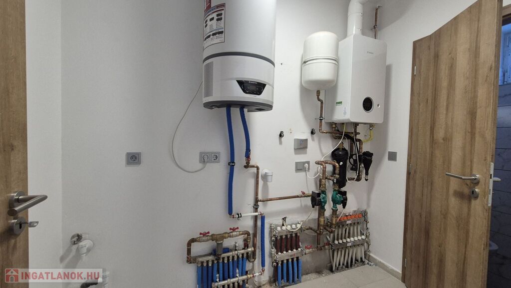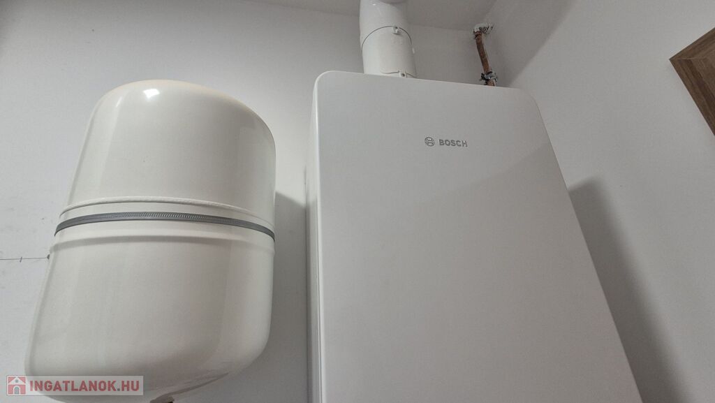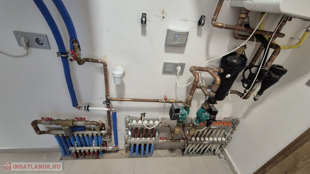 Fűtés: padlófűtés a nappaliban, radiátoros hőleadás a hálókban – gázkazán és hőtárolós bojler biztosítja az energiatakarékos működést