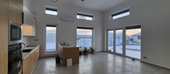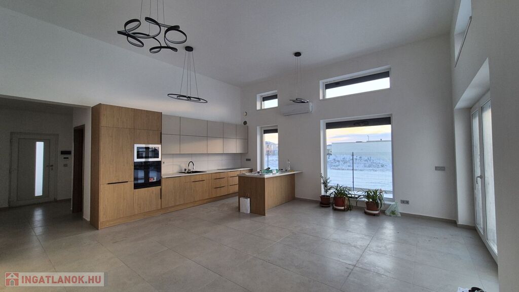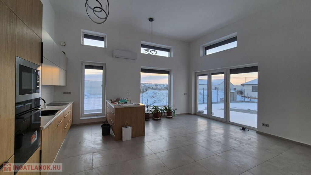A lenyűgöző nappali-konyha-étkező egy légtérben, extra 4 méteres belmagassággal, két oldali természetes bevilágítással kerámia burkolattal és közvetlen, (21,93 nm) teraszkapcsolattal lett kialakítva – a fény és tér élménye garantált. A nappaliban 6 db elektromos redőny, valamint egy 5,4 kW-os klíma kerül beépítésre