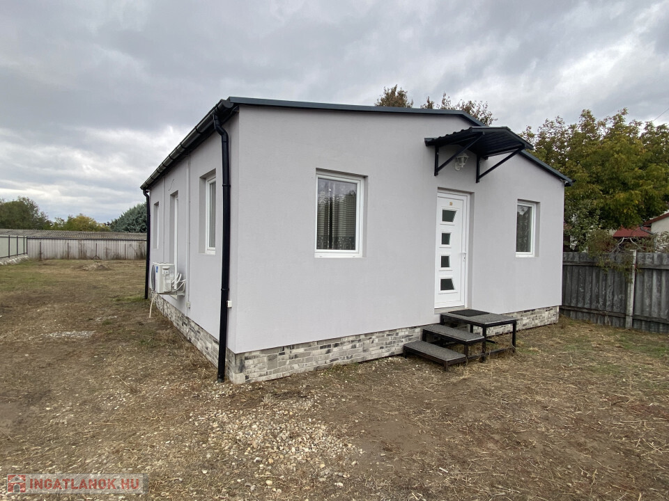Az épület teljesen újszerű állapotú, 2 szoba + nappali, konyha-étkező, fürdőszoba található benne, víz, villany közművekkel felszerelt, zárt tartályos emésztővel, fúrt kúttal a kertben.