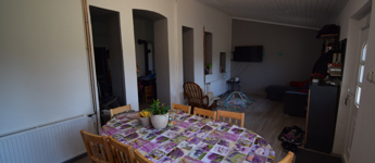 A ház magas (3 m) belmagassággal, tágas terekkel és jó elrendezéssel rendelkezik.