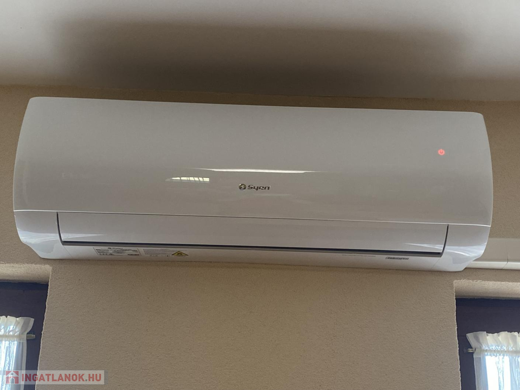 Fűtését és hűtését klímával oldották meg, házi napelem rendszerrel biztosítva, a téli meleget ezen kívül egy fás kandallóval lehet fokozni, melynek hangulata is dukál az ingatlanhoz.