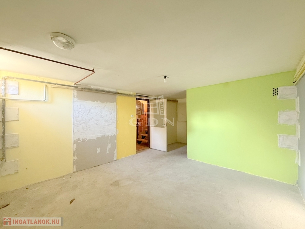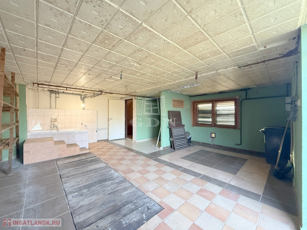 - egy 2 helyiségre felosztott, ablakkal! ellátott 33 m2 - es szuterén szintnek - kiválóan alkalmas otthoni konditerem, iroda, dühöngő kialakítására,