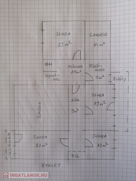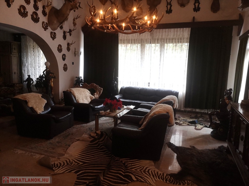 Zala vármegye, Zalaegerszeg, 530m2-es családi ház eladó. A zalai megyeszékhelyen, Alsóerdő közelében található ingatlan 1897m2-es, parkosított telken helyezkedik el. Az udvaron vízforgatós medence, kerti kiülők, szaletli, stb. szolgálja az ott tartózkodók kikapcsolódását. A 80-as évek elején épült, tehermentes ház garázsszintjén a duplagarázson kívül kazánház, 2 tágas tároló, lépcsőház, közlekedő, szauna, konyha és borozó, a fogadószinten nagyméretű, légkondicionált, teraszos nappali, két erkélyes szoba, fürdőszoba, lépcsőház, közlekedő, konyha étkezővel és kamra, az emeleten további négy szoba, (melyekből kettő erkélyes), gardrób, közlekedő, lépcsőház és fürdőszoba, végül a beépített tetőtérben társalgó, tároló és konditerem került kialakításra. A bútorozott ingatlan melegéről gáz-, és vegyes tüzelésű kazán gondoskodik, radiátoros hőleadókkal.