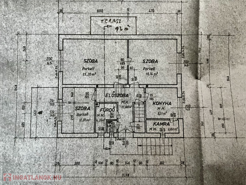 A háromszoba , konyha, fürdő, külön wc, előszoba , kamra, nagy terasszal rendendelkező ház ,