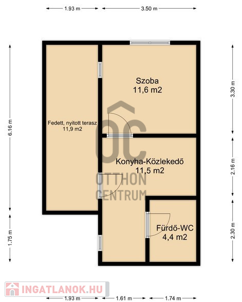 - Fedett terasza 11,9 m2 nagyságú.